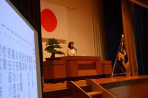 清水校長先生をはじめ、皆が見守る中、新入生代表の生徒が喜びの言葉を堂々と述べました。